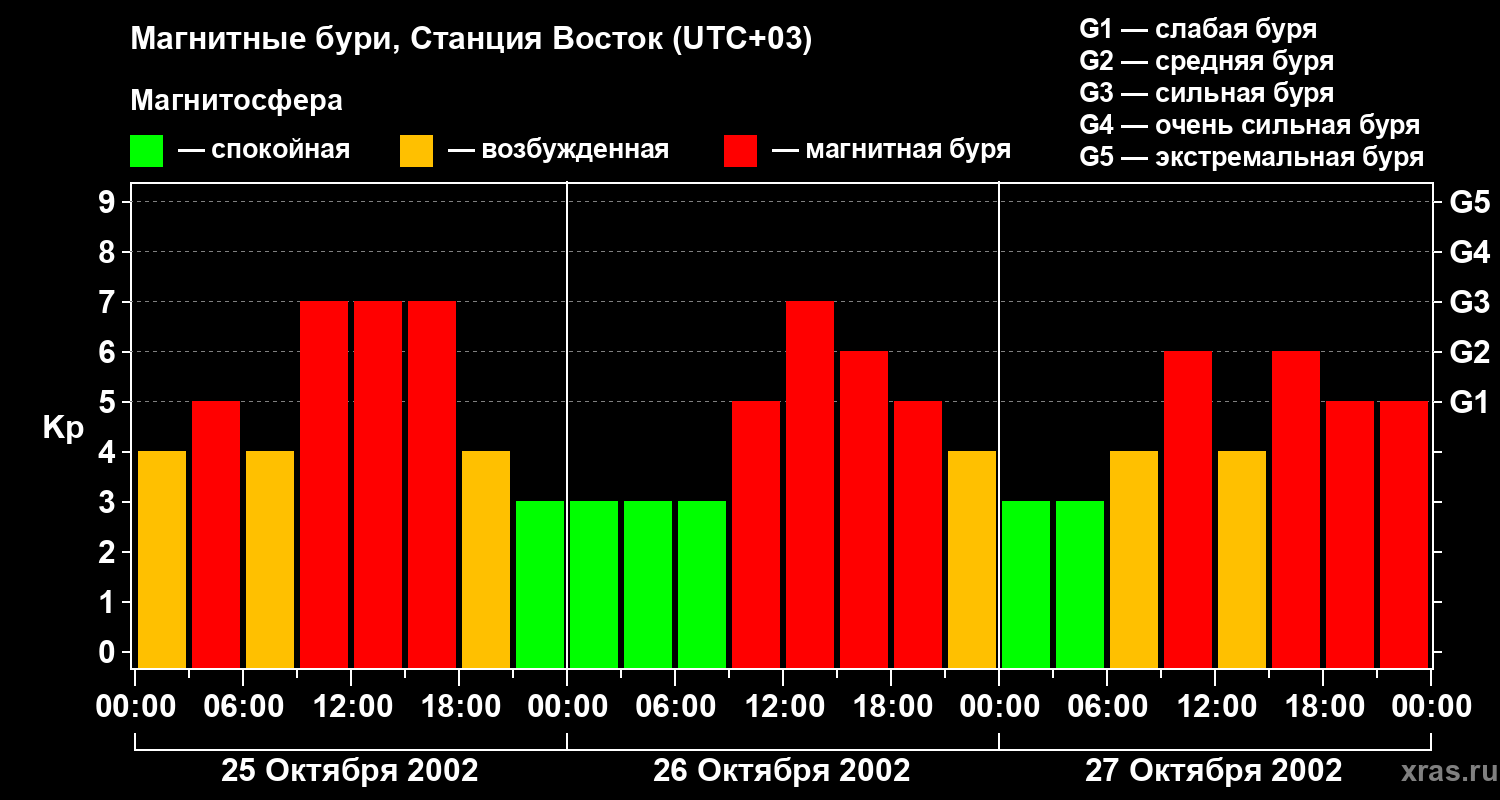 Магнитные бури локации Станция Восток — 27 октября 2002 года