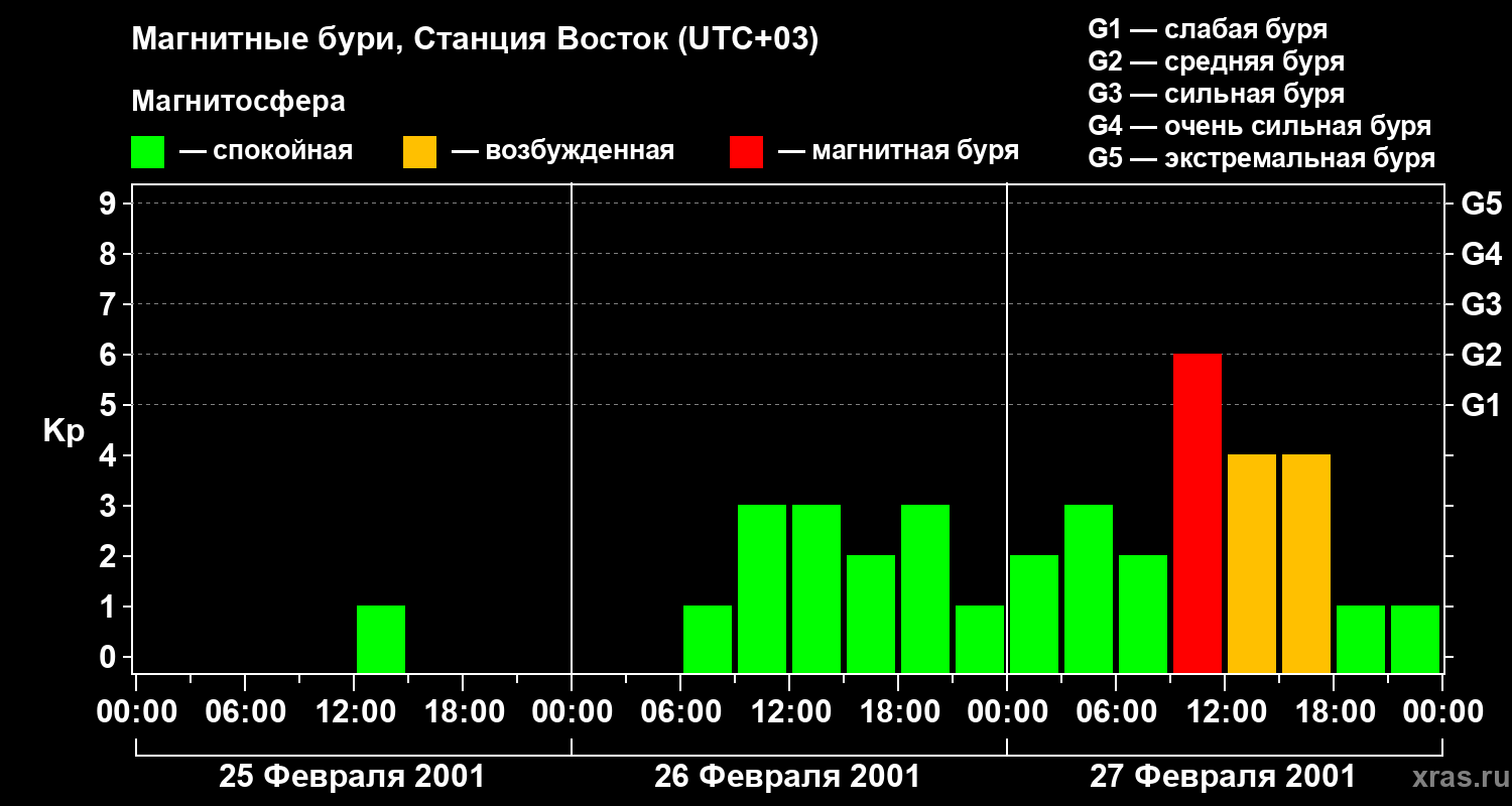 Магнитные бури локации Станция Восток — 27 февраля 2001 года