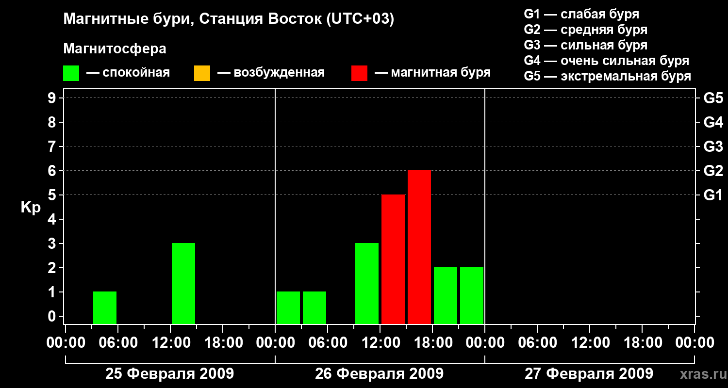 Магнитные бури локации Станция Восток в феврале 2009 года