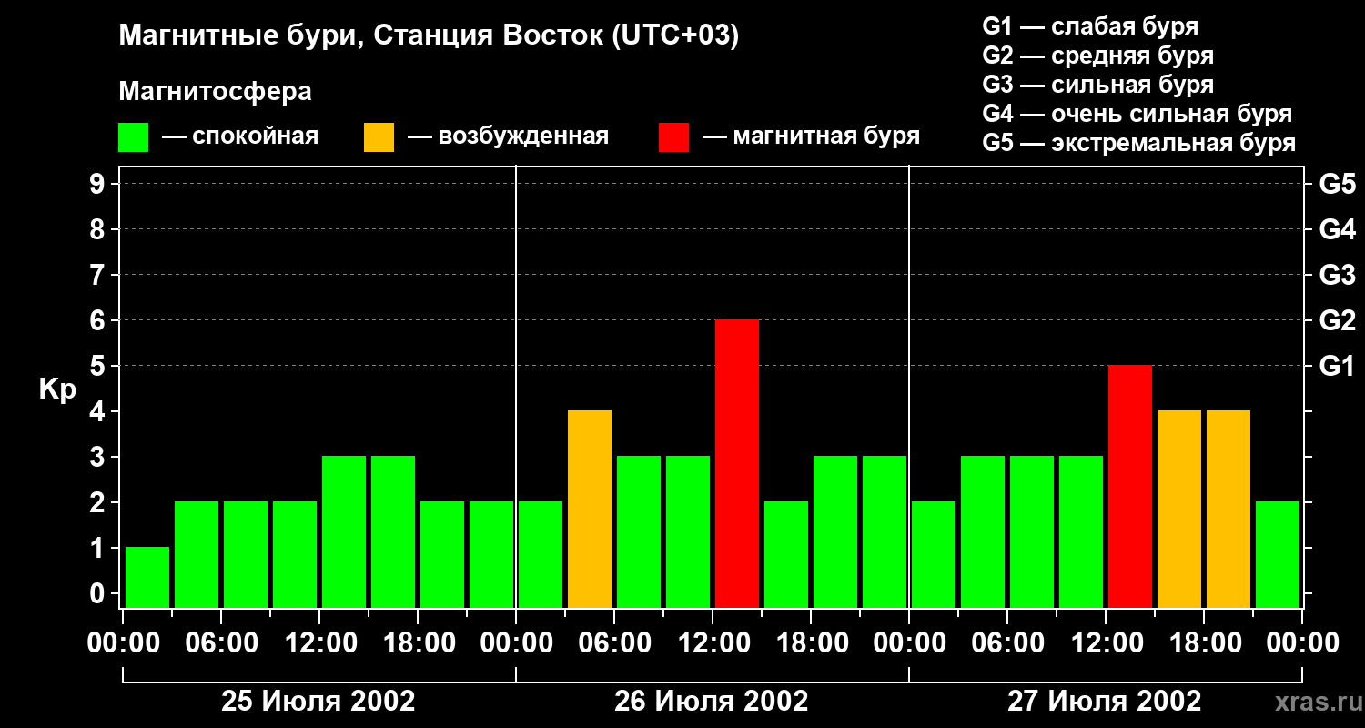 Магнитные бури локации Станция Восток — 27 июля 2002 года