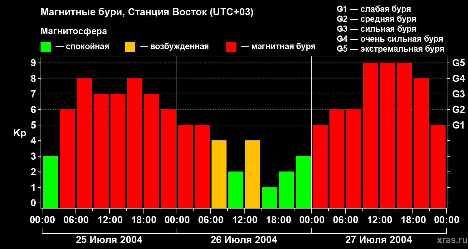 Магнитные бури локации Станция Восток — 27 июля 2004 года
