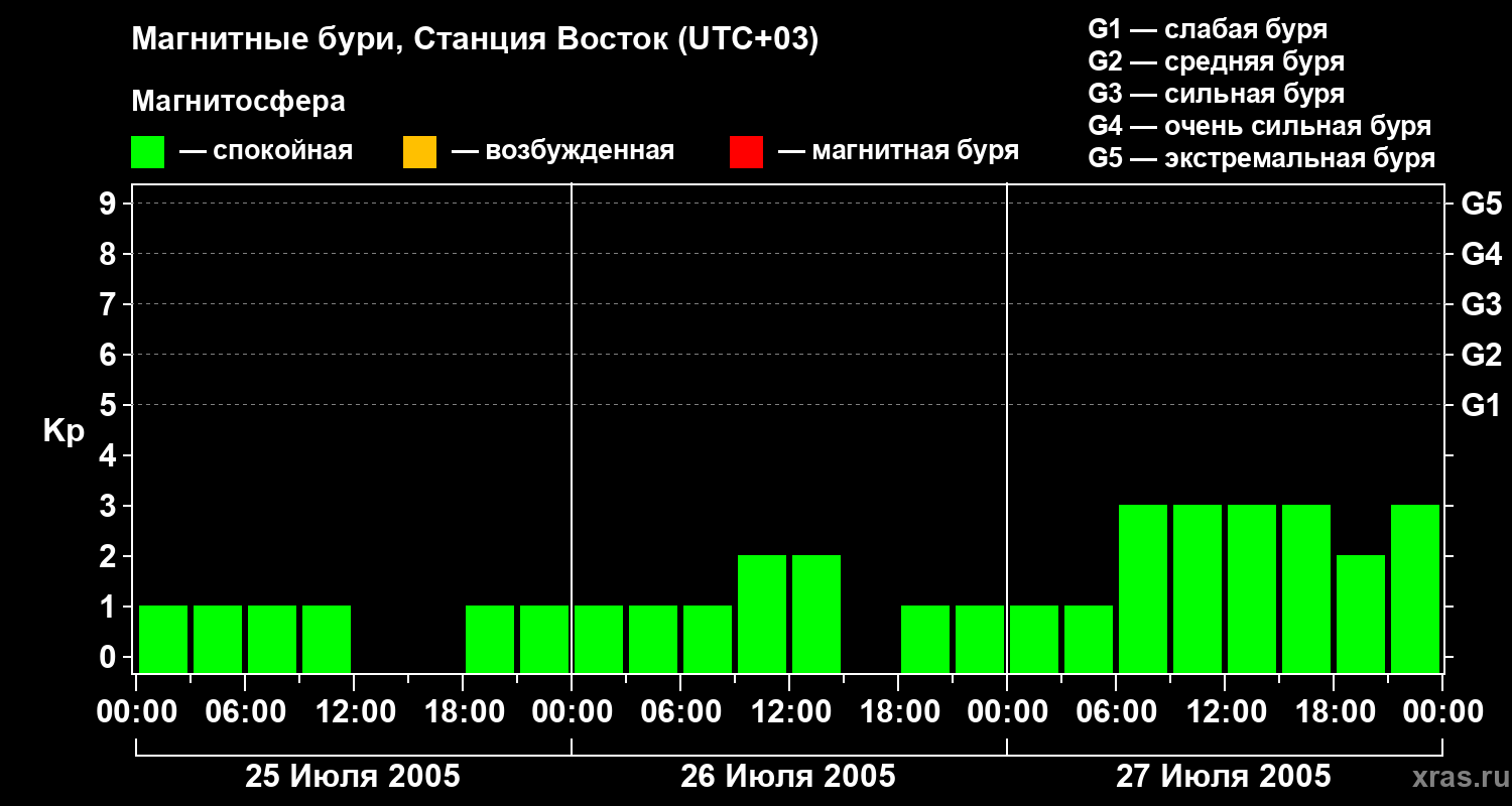 Магнитные бури локации Станция Восток 27 июля 2005 года