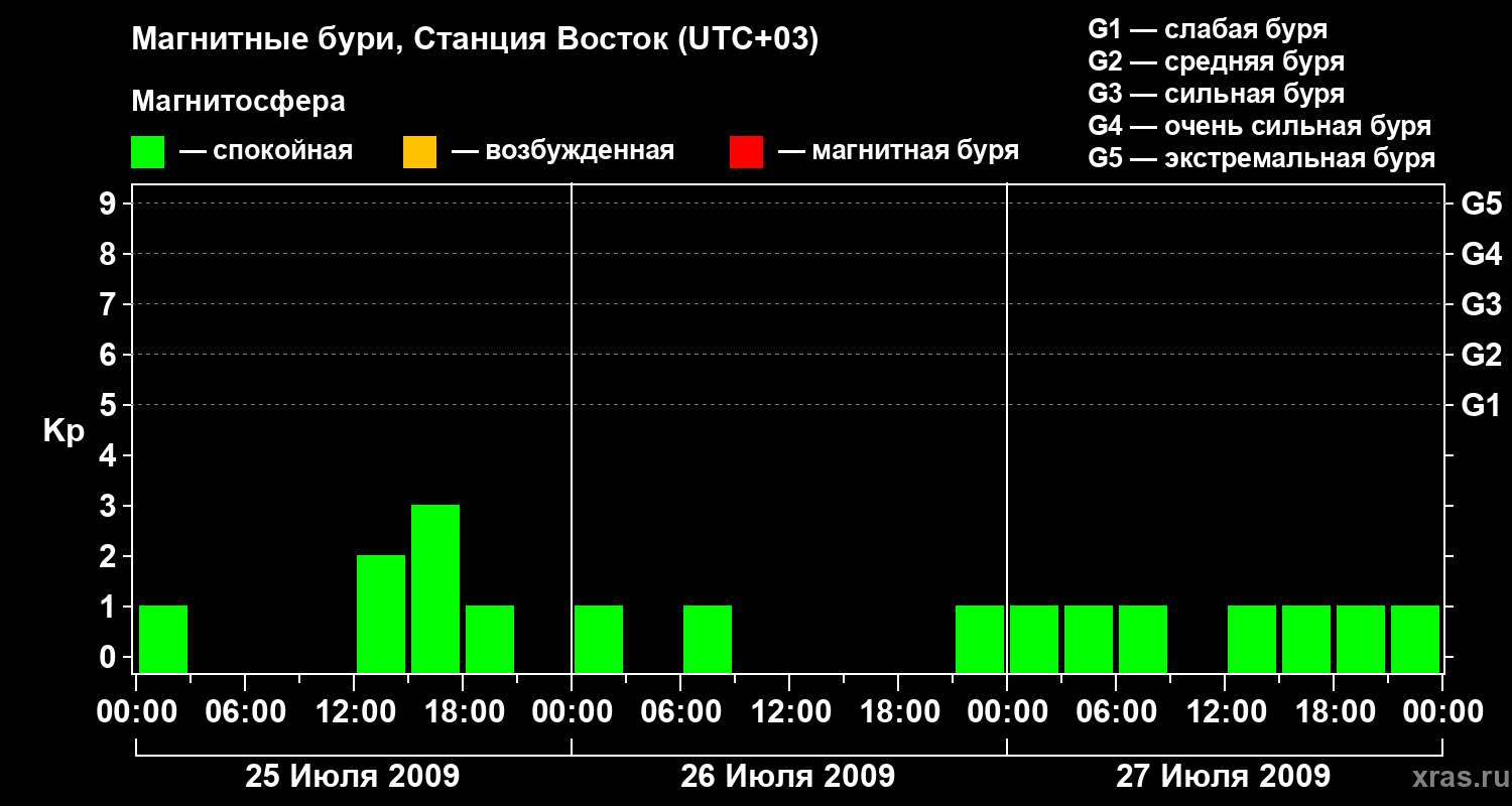 Магнитные бури локации Станция Восток 27 июля 2009 года