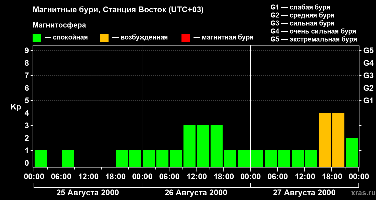 Магнитные бури локации Станция Восток — 27 августа 2000 года