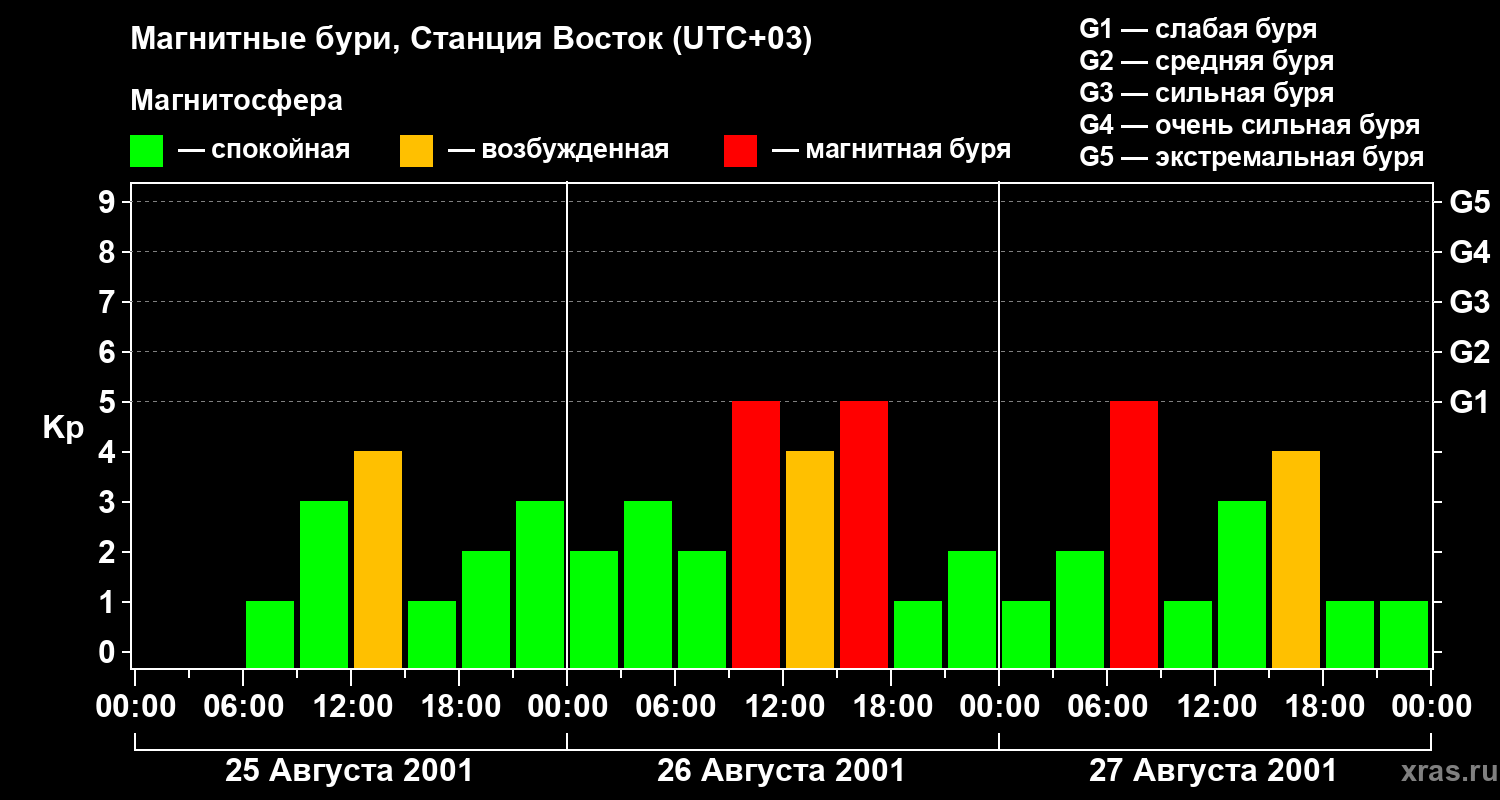 Магнитные бури локации Станция Восток — 27 августа 2001 года