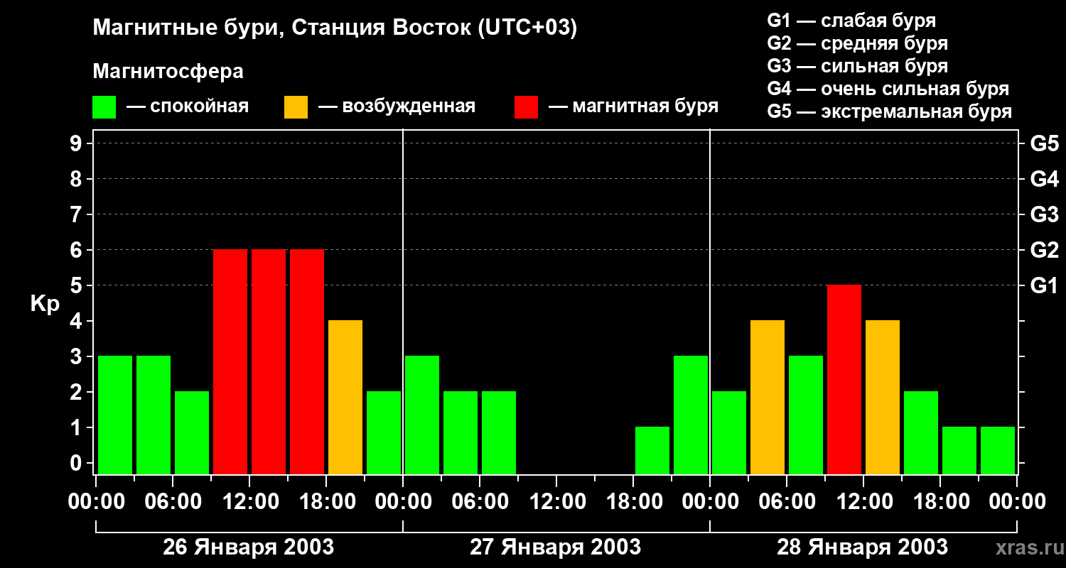 Магнитные бури локации Станция Восток — 28 января 2003 года