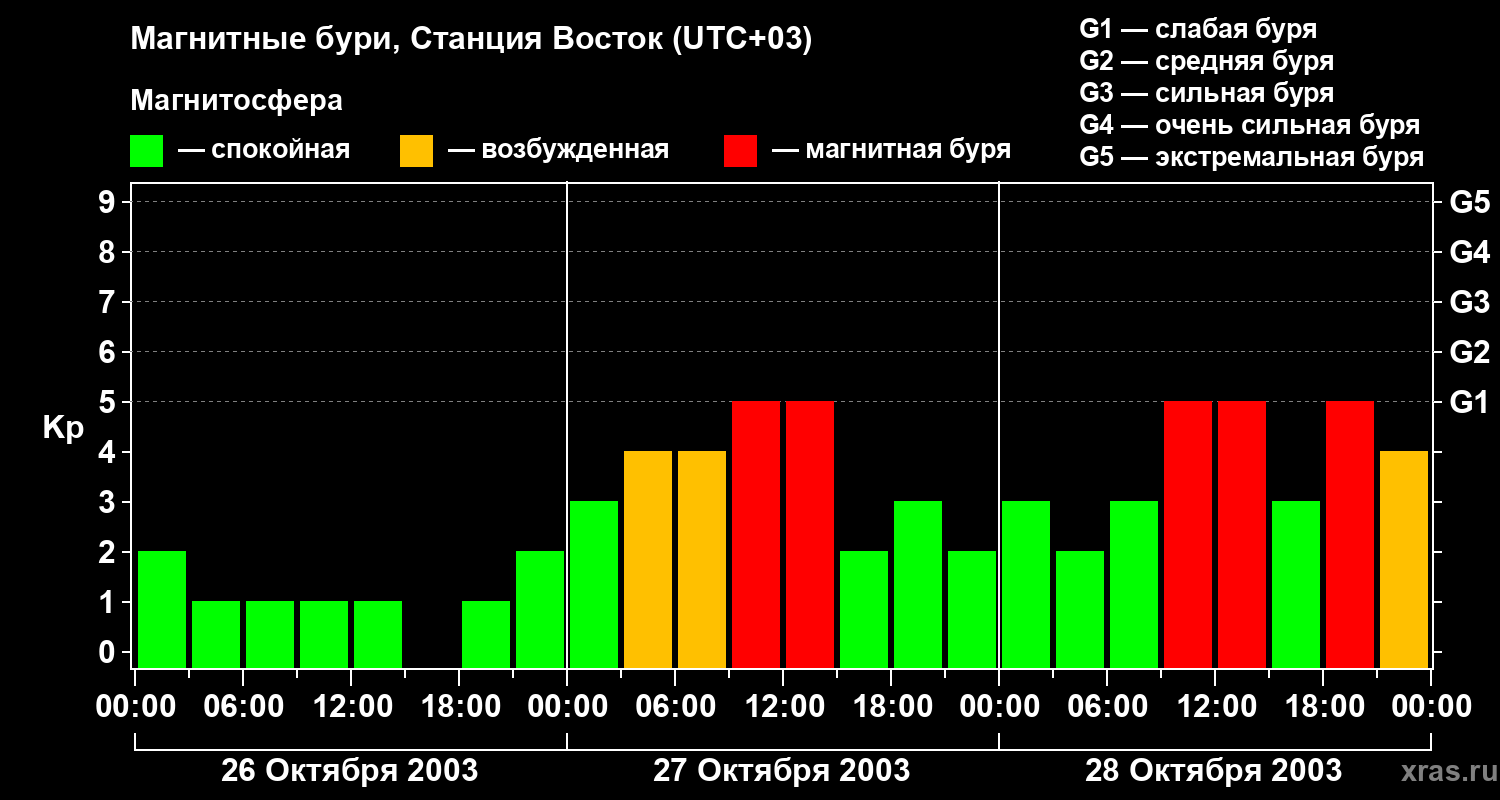 Магнитные бури локации Станция Восток — 28 октября 2003 года