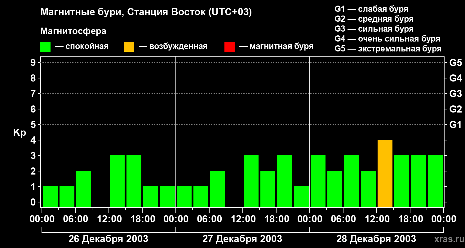 Магнитные бури локации Станция Восток — 28 декабря 2003 года