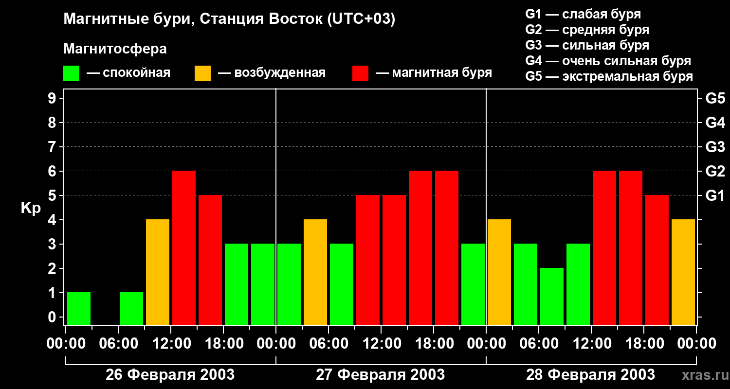 Магнитные бури локации Станция Восток — 28 февраля 2003 года