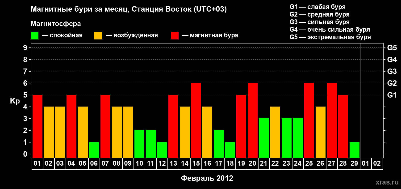 Магнитные бури локации Станция Восток в феврале 2012 года