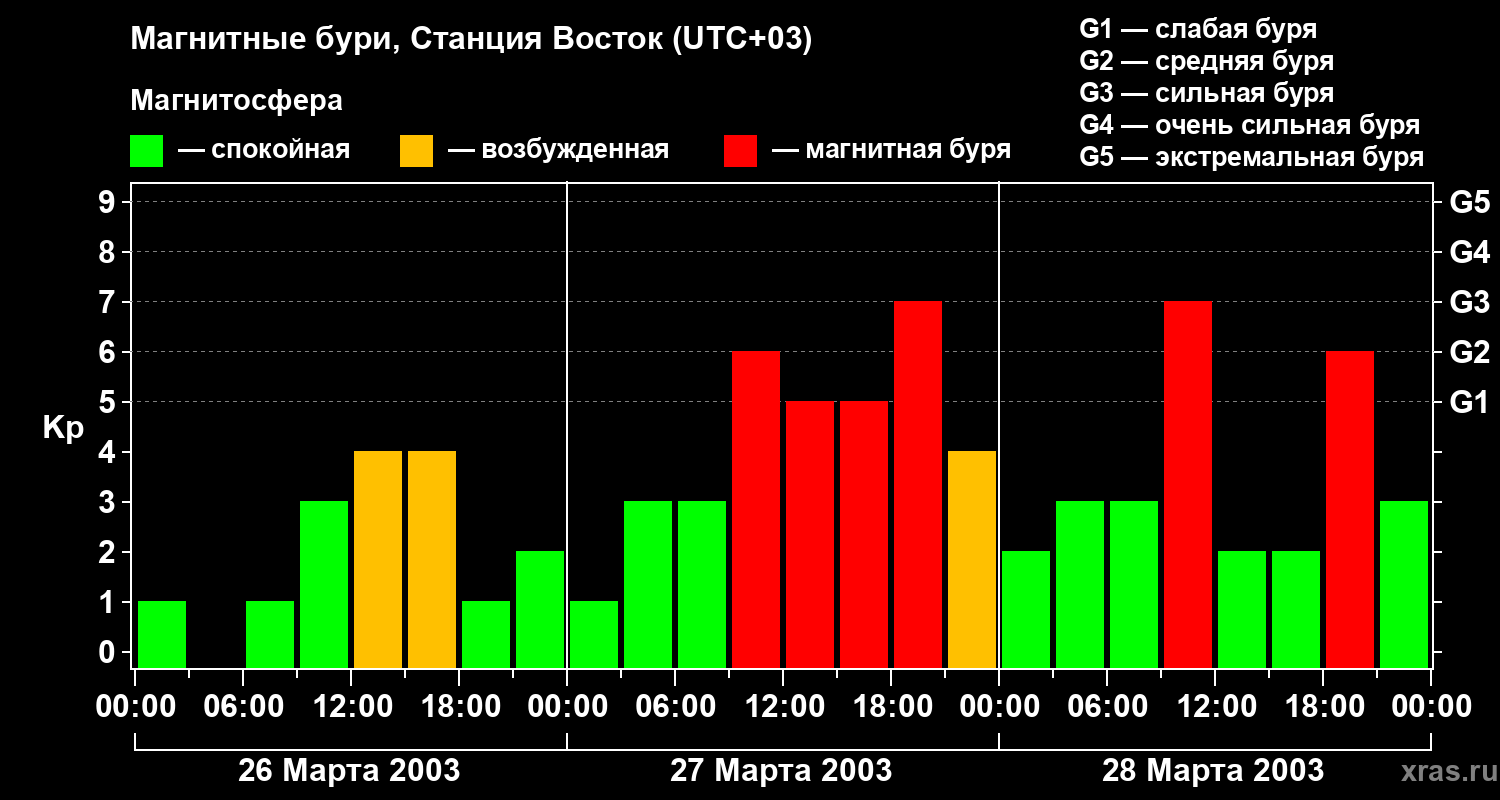 Магнитные бури локации Станция Восток 28 марта 2003 года