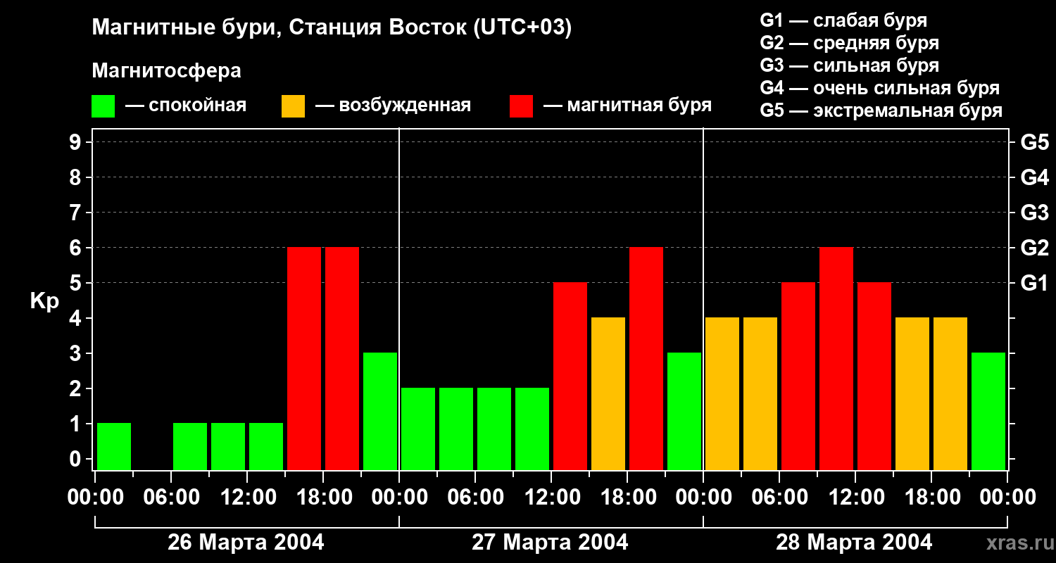 Магнитные бури локации Станция Восток — 28 марта 2004 года