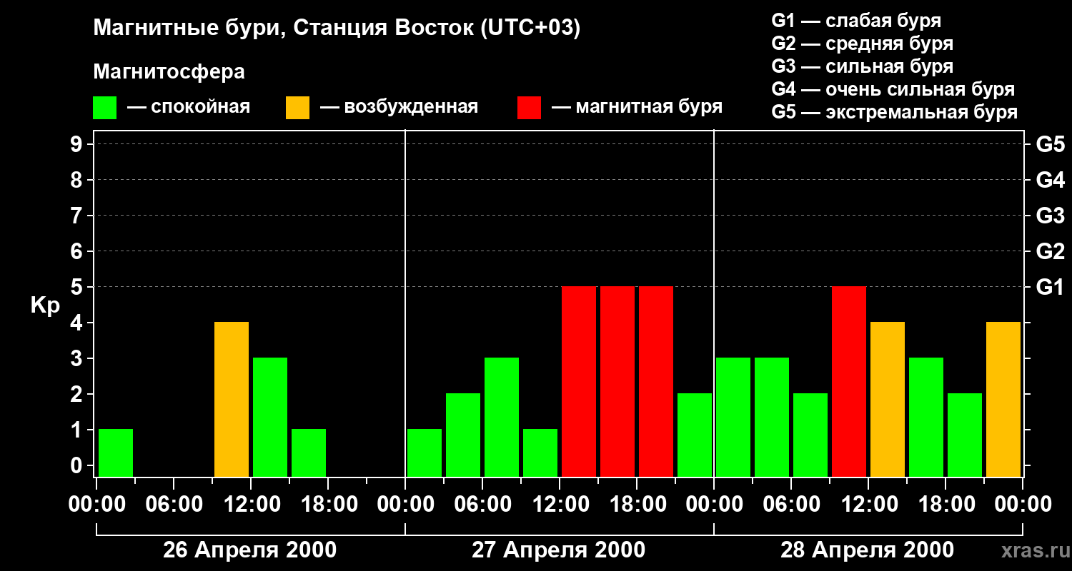 Магнитные бури локации Станция Восток — 28 апреля 2000 года