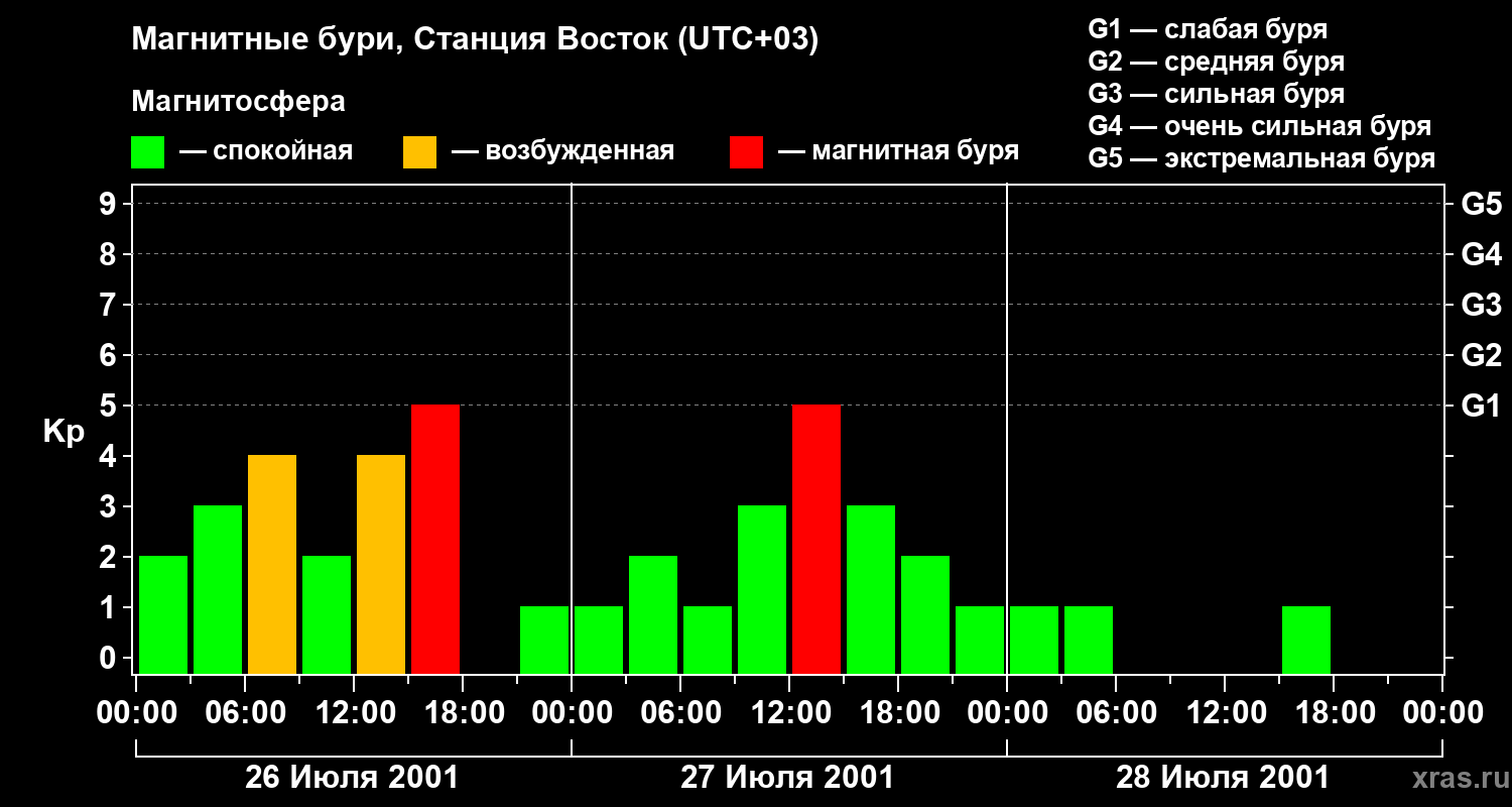 Магнитные бури локации Станция Восток — 28 июля 2001 года