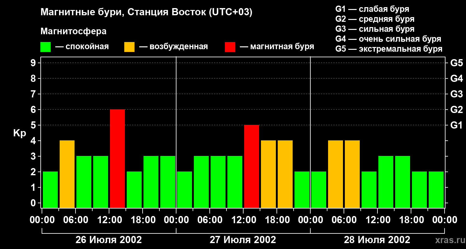 Магнитные бури локации Станция Восток 28 июля 2002 года