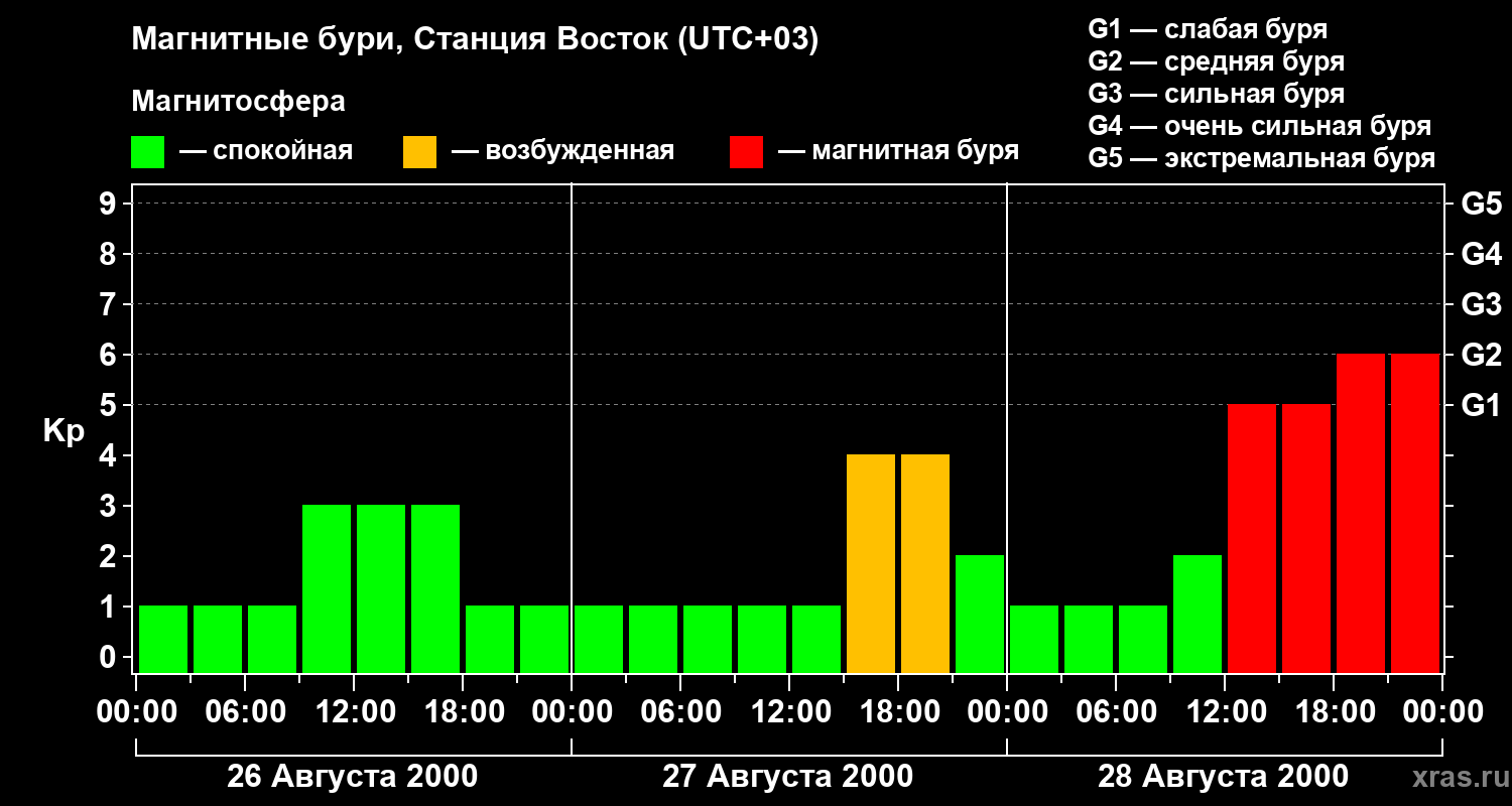 Магнитные бури локации Станция Восток — 28 августа 2000 года