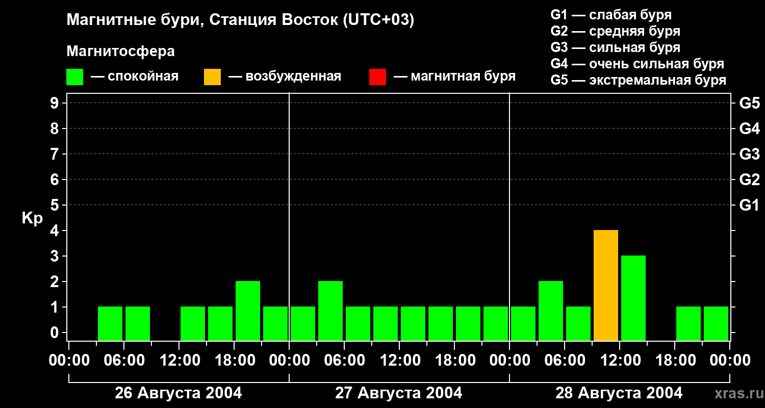 Магнитные бури локации Станция Восток — 28 августа 2004 года