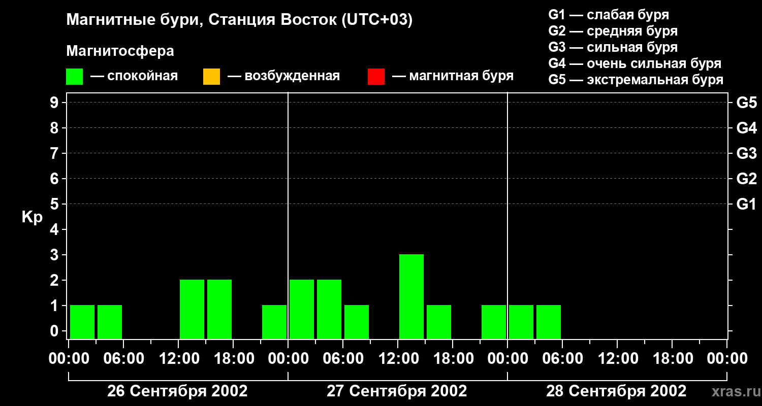 Магнитные бури локации Станция Восток 28 сентября 2002 года
