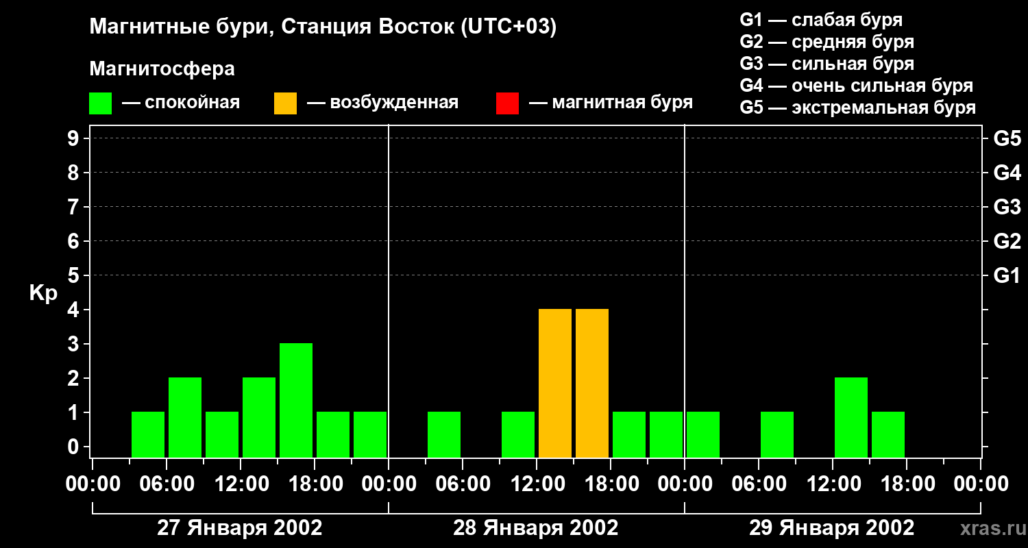Магнитные бури локации Станция Восток — 29 января 2002 года