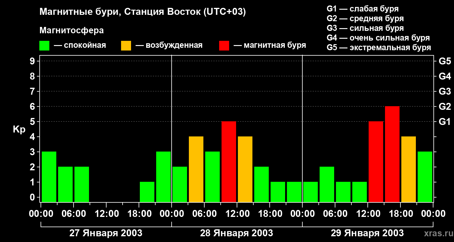 Магнитные бури локации Станция Восток — 29 января 2003 года