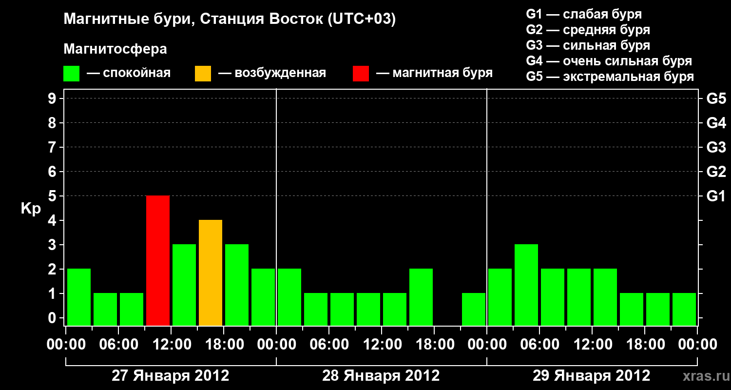 Магнитные бури локации Станция Восток — 29 января 2012 года