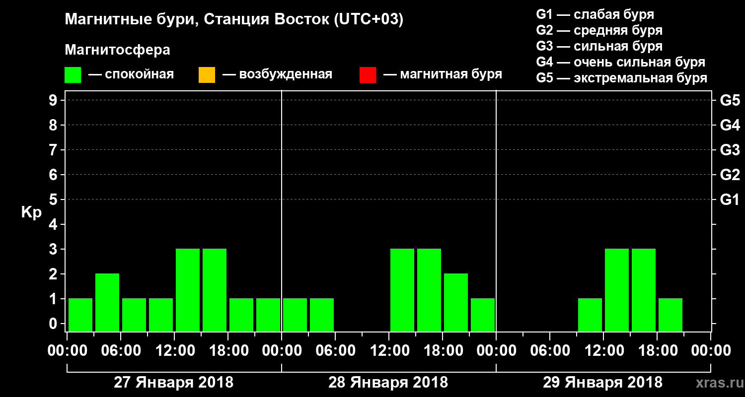 Магнитные бури локации Станция Восток — 29 января 2018 года