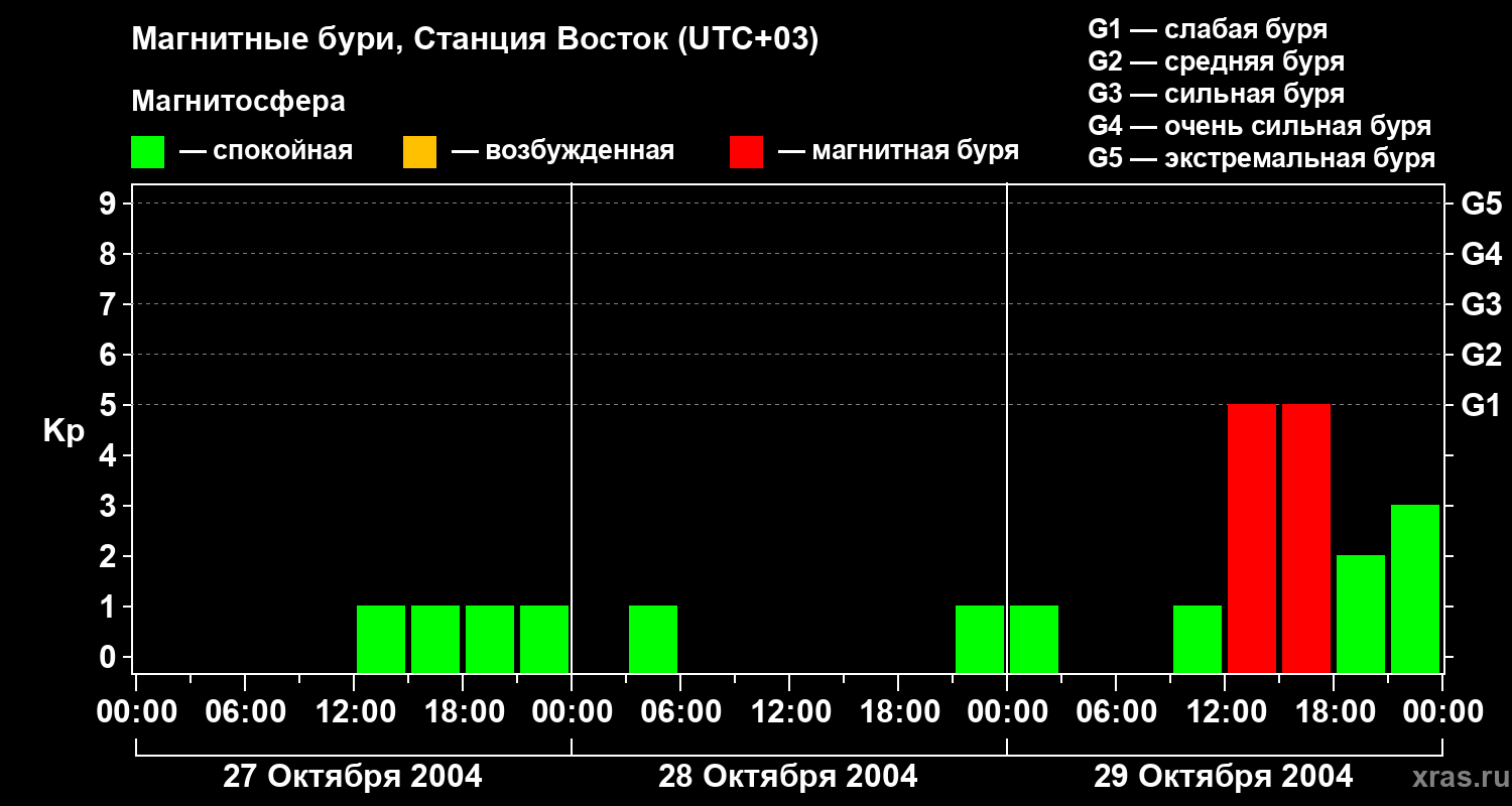Магнитные бури локации Станция Восток — 29 октября 2004 года