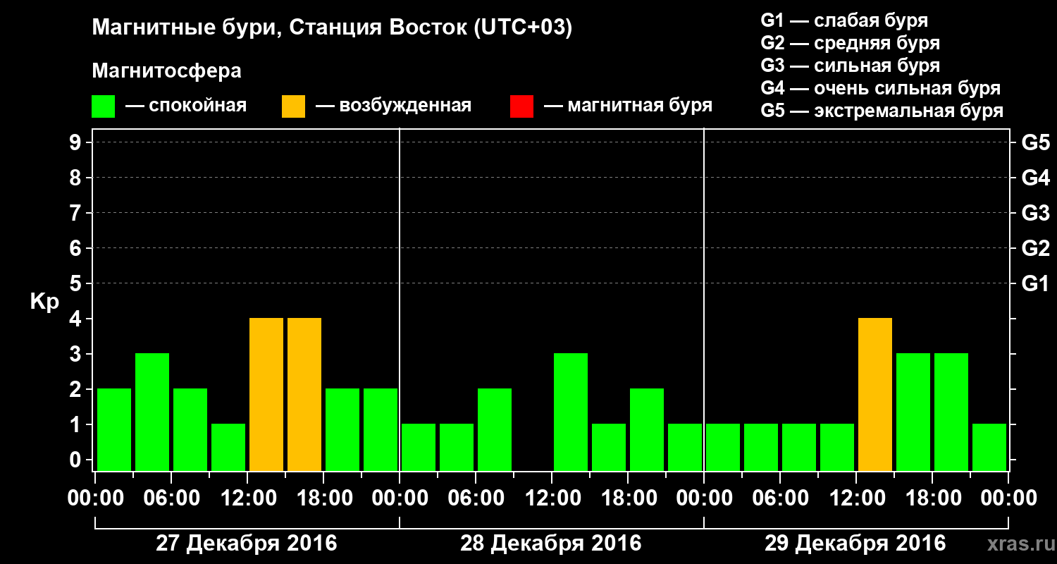 Магнитные бури локации Станция Восток 29 декабря 2016 года