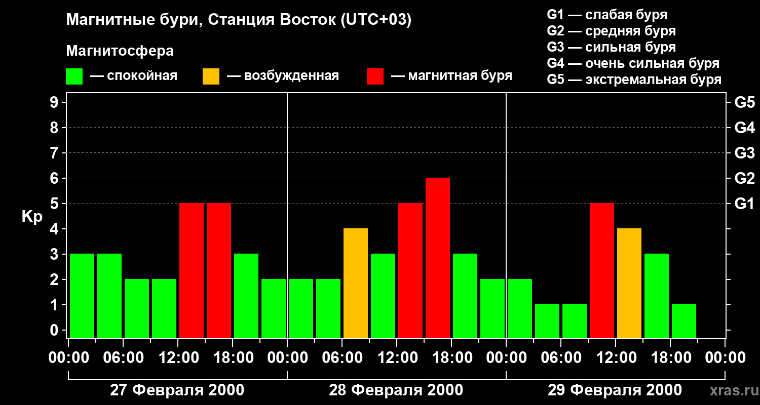 Магнитные бури локации Станция Восток — 29 февраля 2000 года