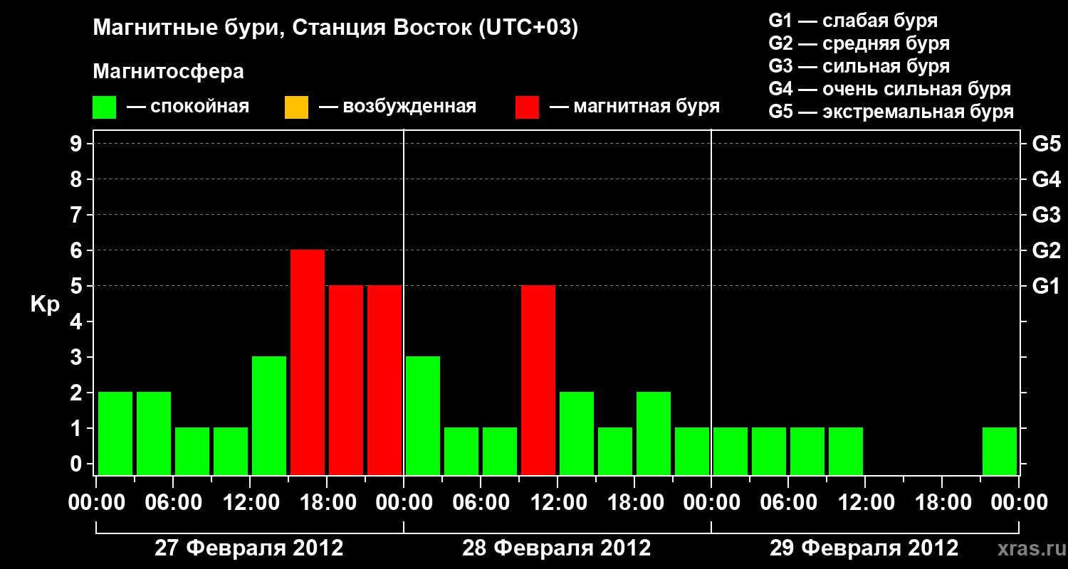Магнитные бури локации Станция Восток — 29 февраля 2012 года