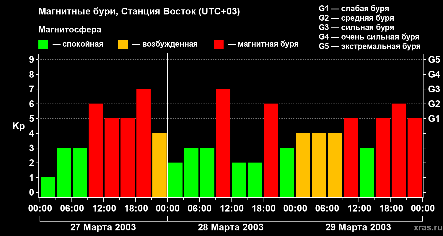 Магнитные бури локации Станция Восток — 29 марта 2003 года