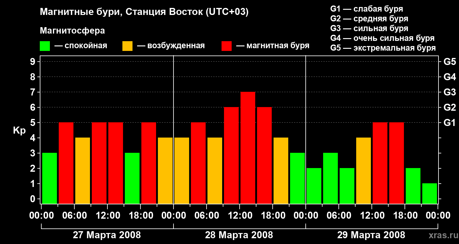 Магнитные бури локации Станция Восток 29 марта 2008 года