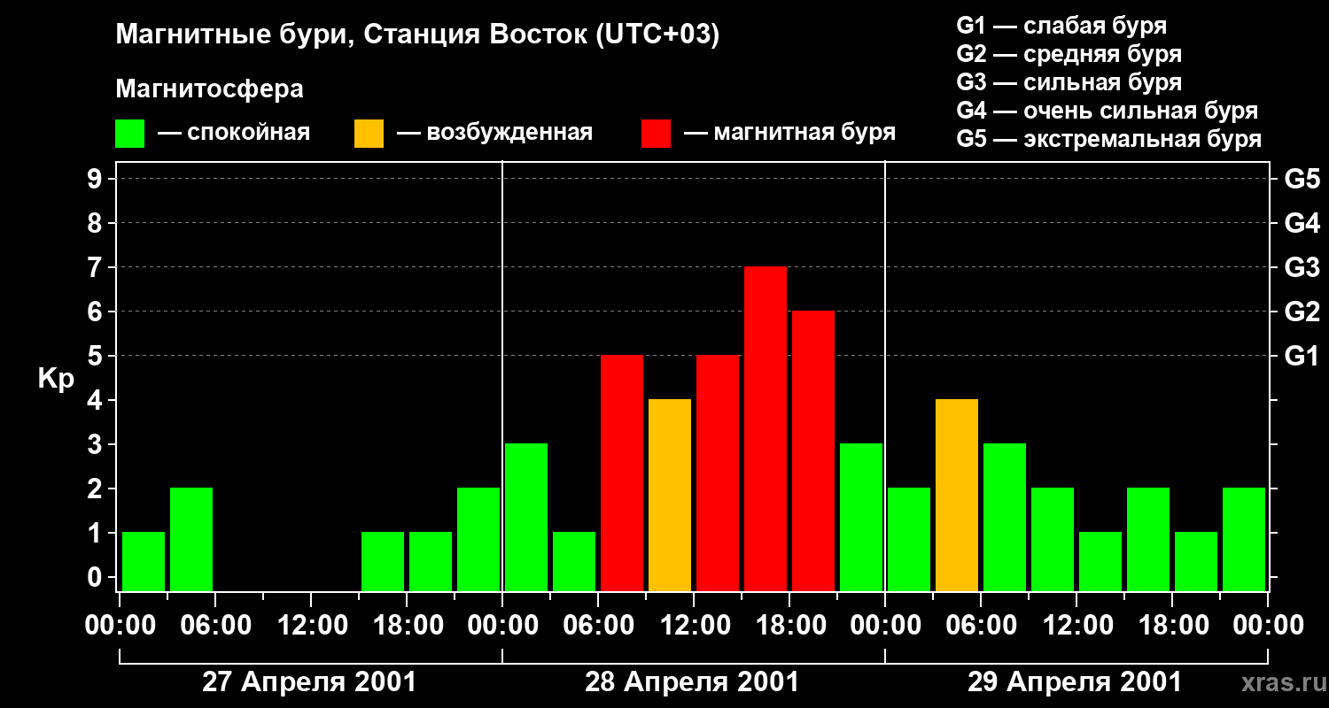 Магнитные бури локации Станция Восток — 29 апреля 2001 года