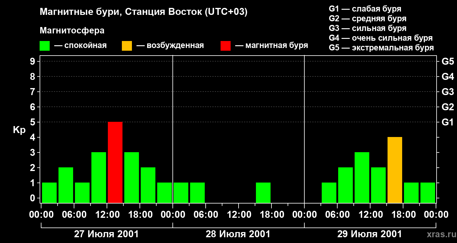 Магнитные бури локации Станция Восток — 29 июля 2001 года