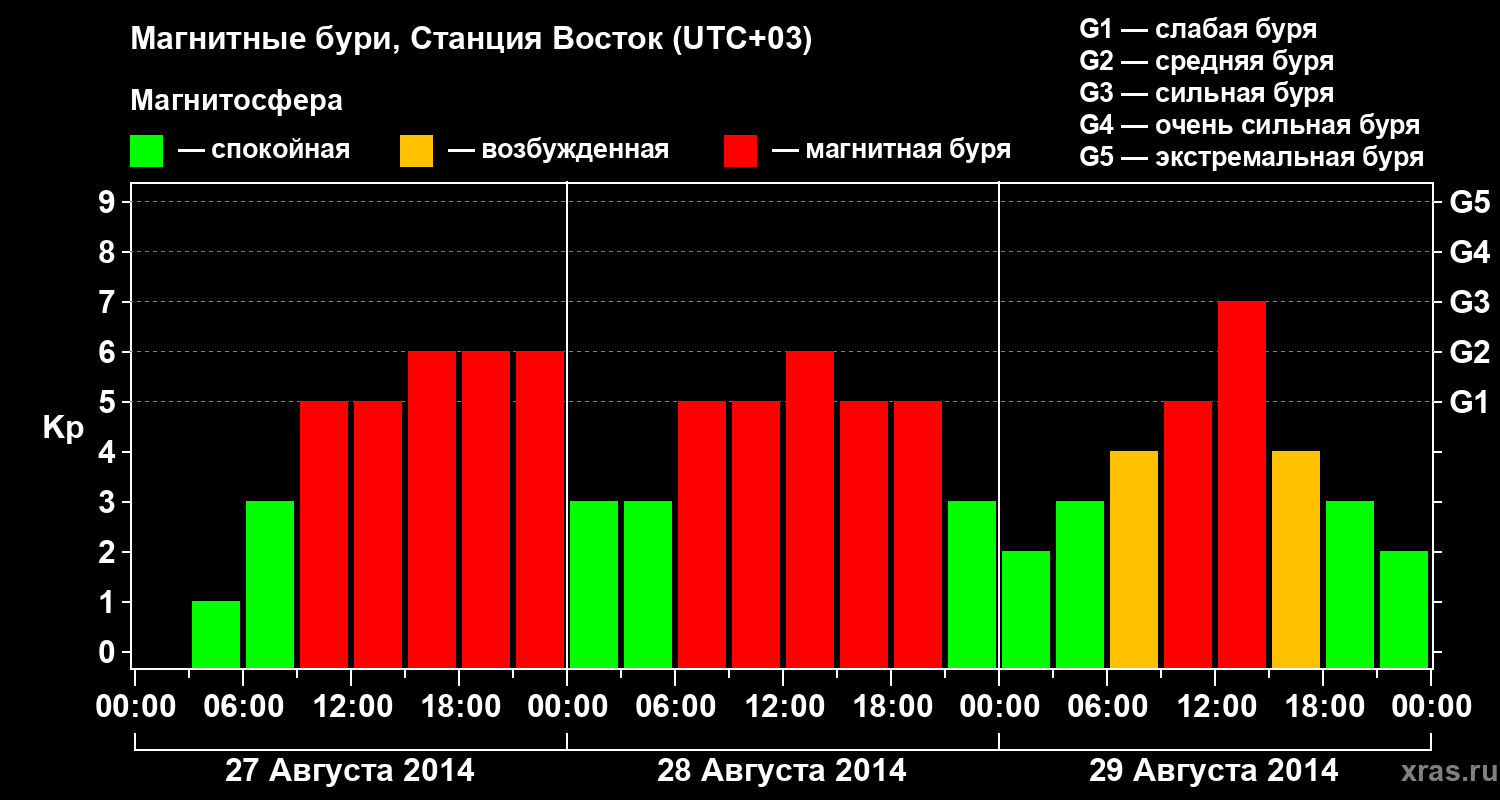 Магнитные бури локации Станция Восток — 29 августа 2014 года