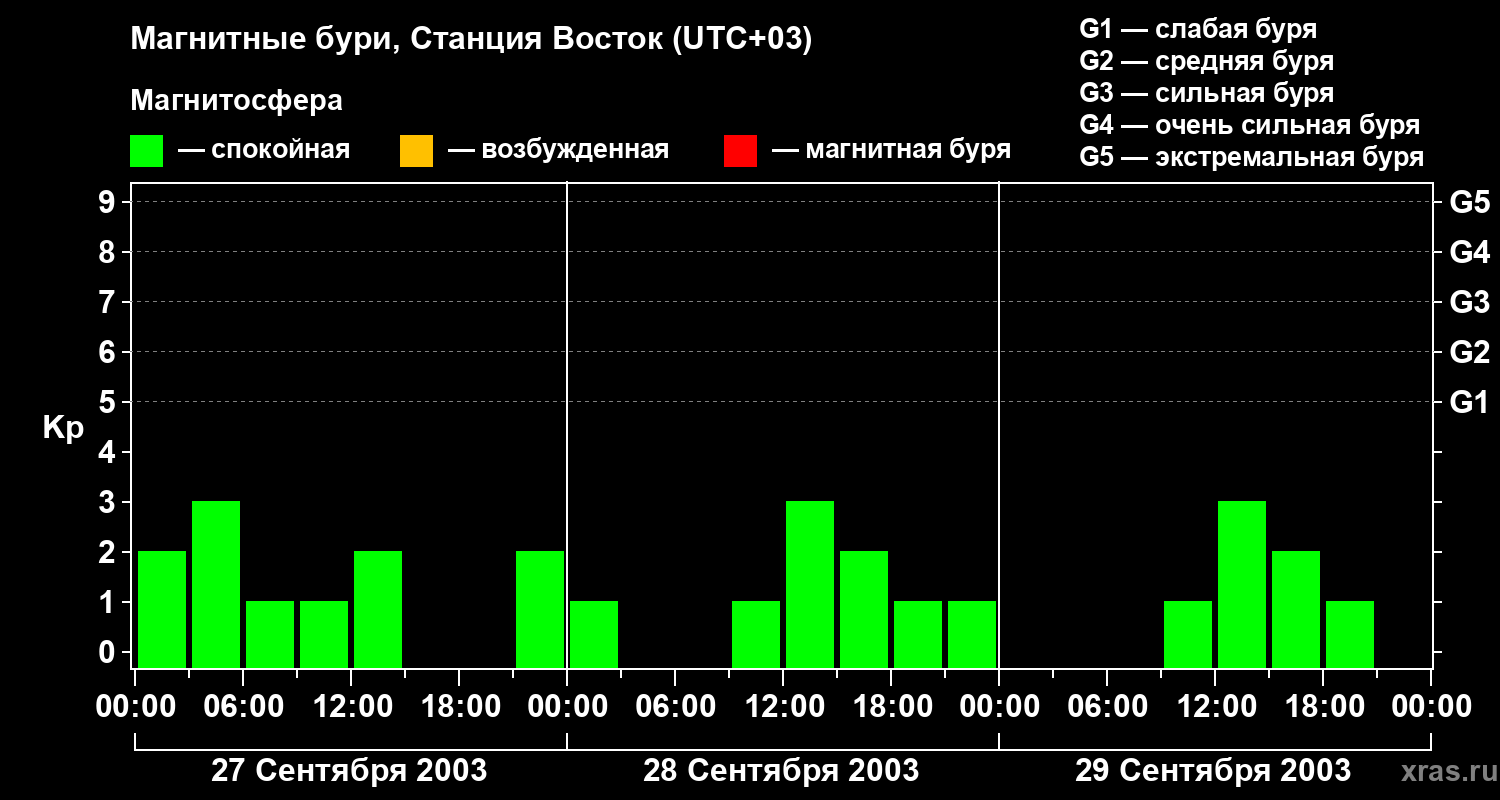 Магнитные бури локации Станция Восток — 29 сентября 2003 года