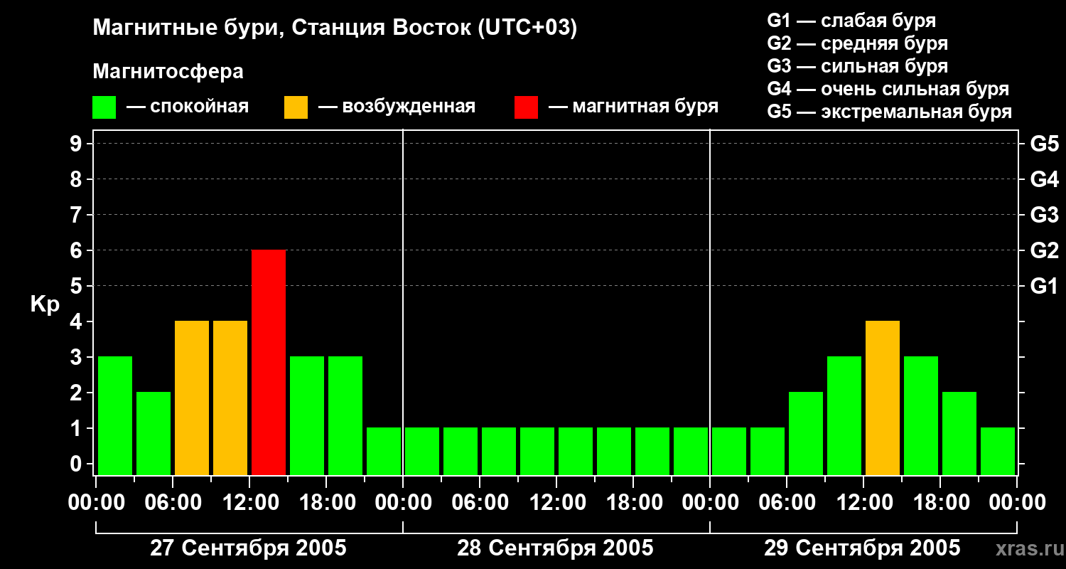 Магнитные бури локации Станция Восток в сентябре 2005 года