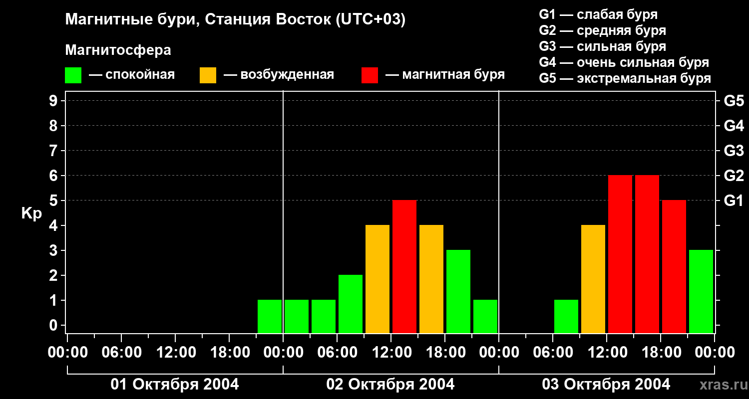 Магнитные бури локации Станция Восток — 3 октября 2004 года
