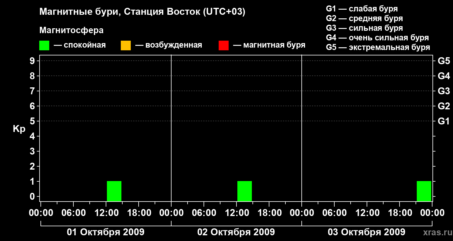 Магнитные бури локации Станция Восток — 3 октября 2009 года