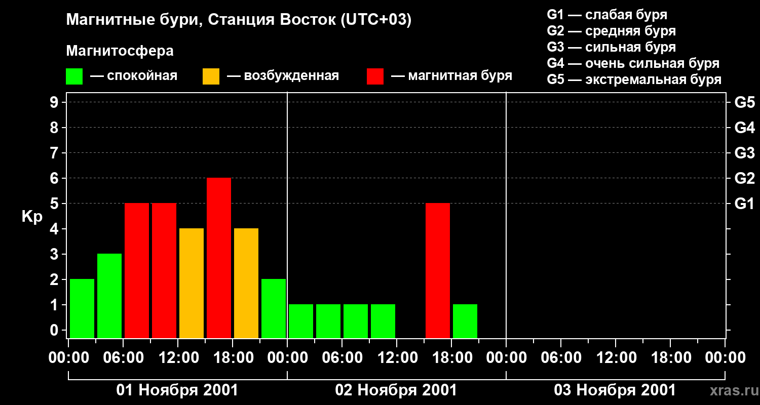 Магнитные бури локации Станция Восток — 3 ноября 2001 года