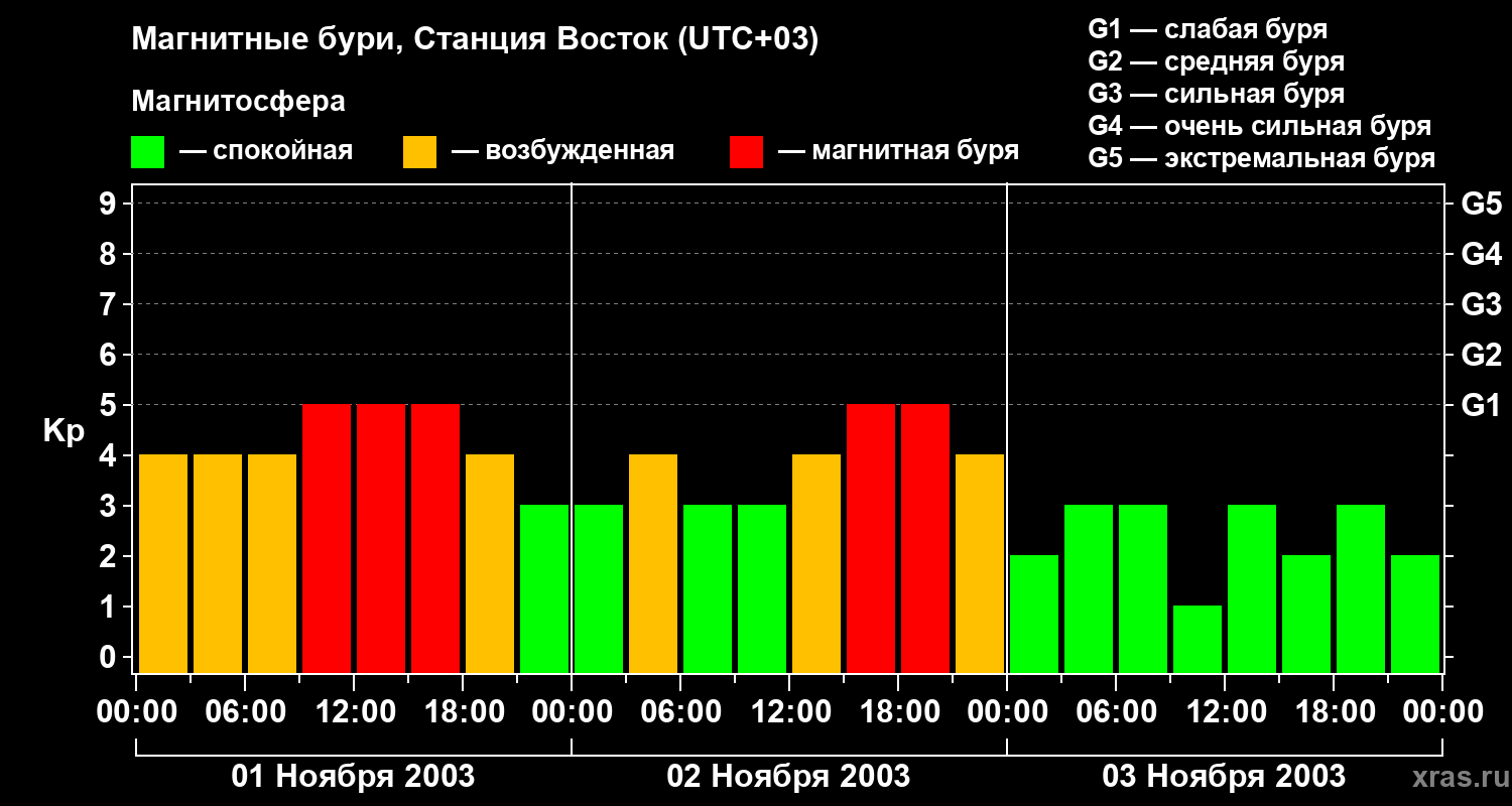 Магнитные бури локации Станция Восток — 3 ноября 2003 года