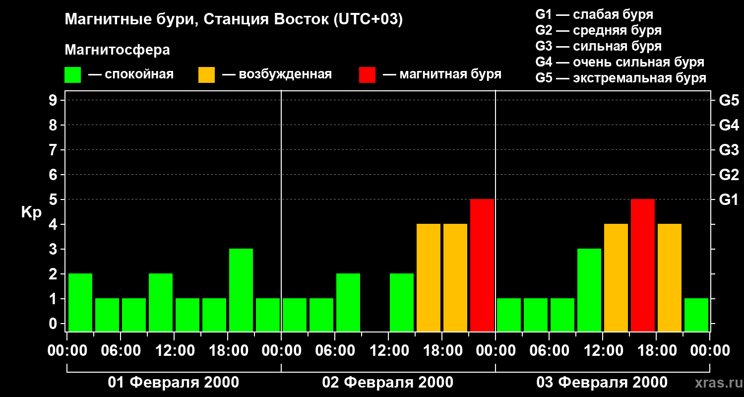Магнитные бури локации Станция Восток — 3 февраля 2000 года