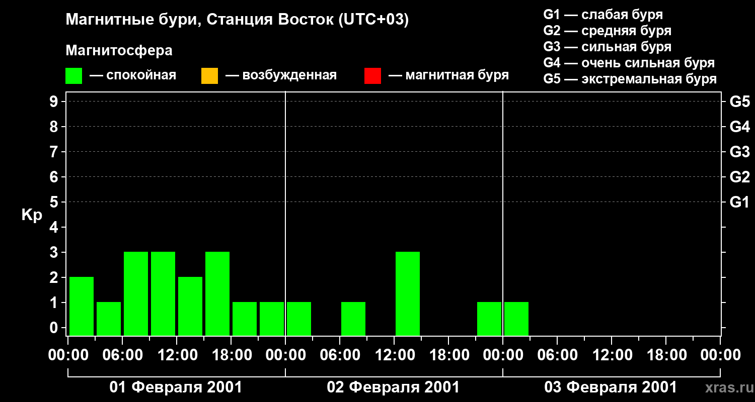 Магнитные бури локации Станция Восток — 3 февраля 2001 года