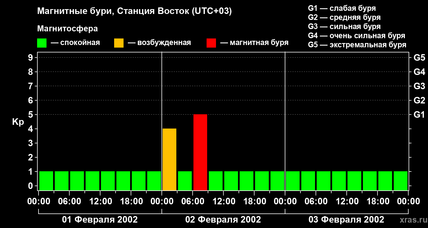 Магнитные бури локации Станция Восток — 3 февраля 2002 года