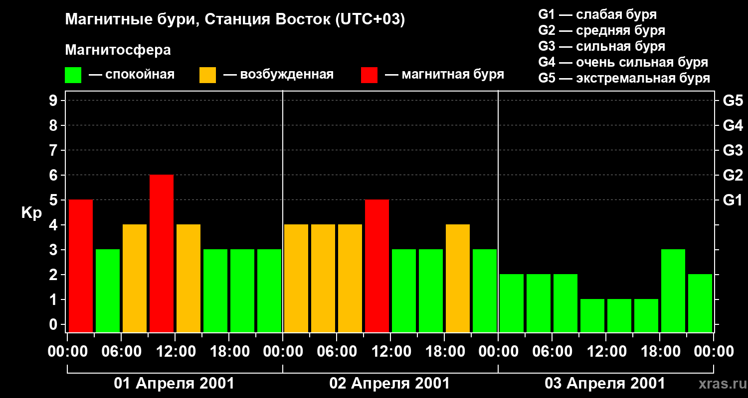 Магнитные бури локации Станция Восток — 3 апреля 2001 года