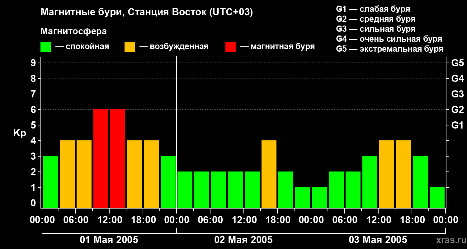 Магнитные бури локации Станция Восток — 3 мая 2005 года