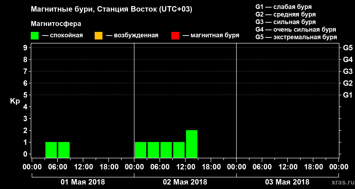 Магнитные бури локации Станция Восток — 3 мая 2018 года