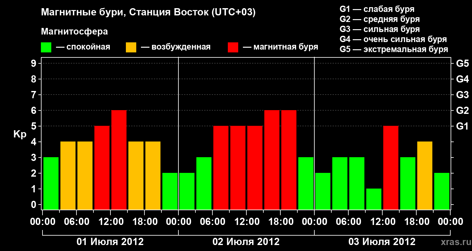 Магнитные бури локации Станция Восток — 3 июля 2012 года