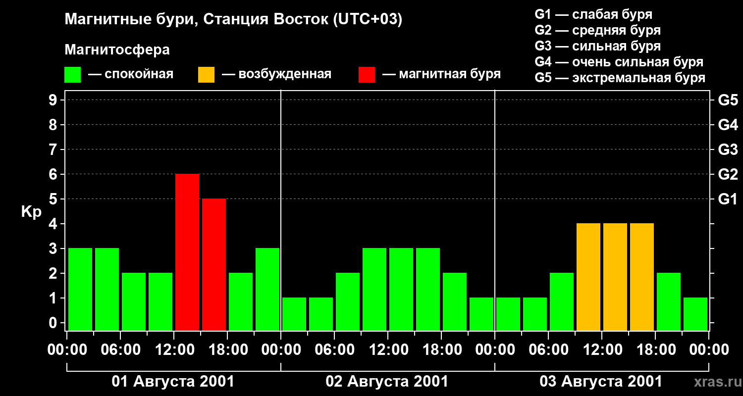 Магнитные бури локации Станция Восток — 3 августа 2001 года