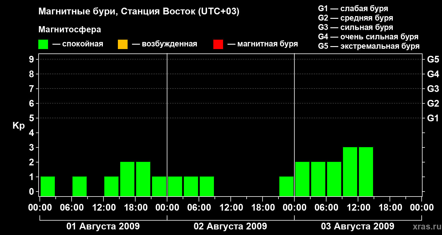 Магнитные бури локации Станция Восток — 3 августа 2009 года